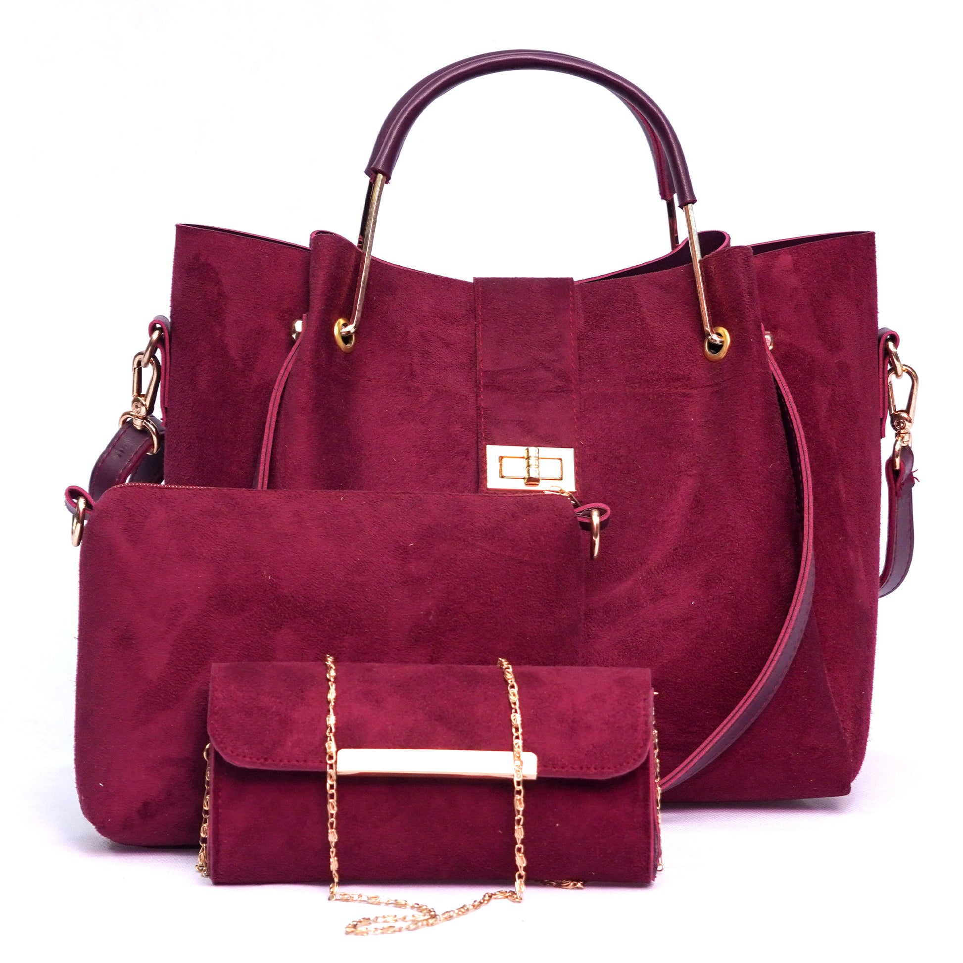 Cofix Handbag (3 Piece) – Maroon (Suede)